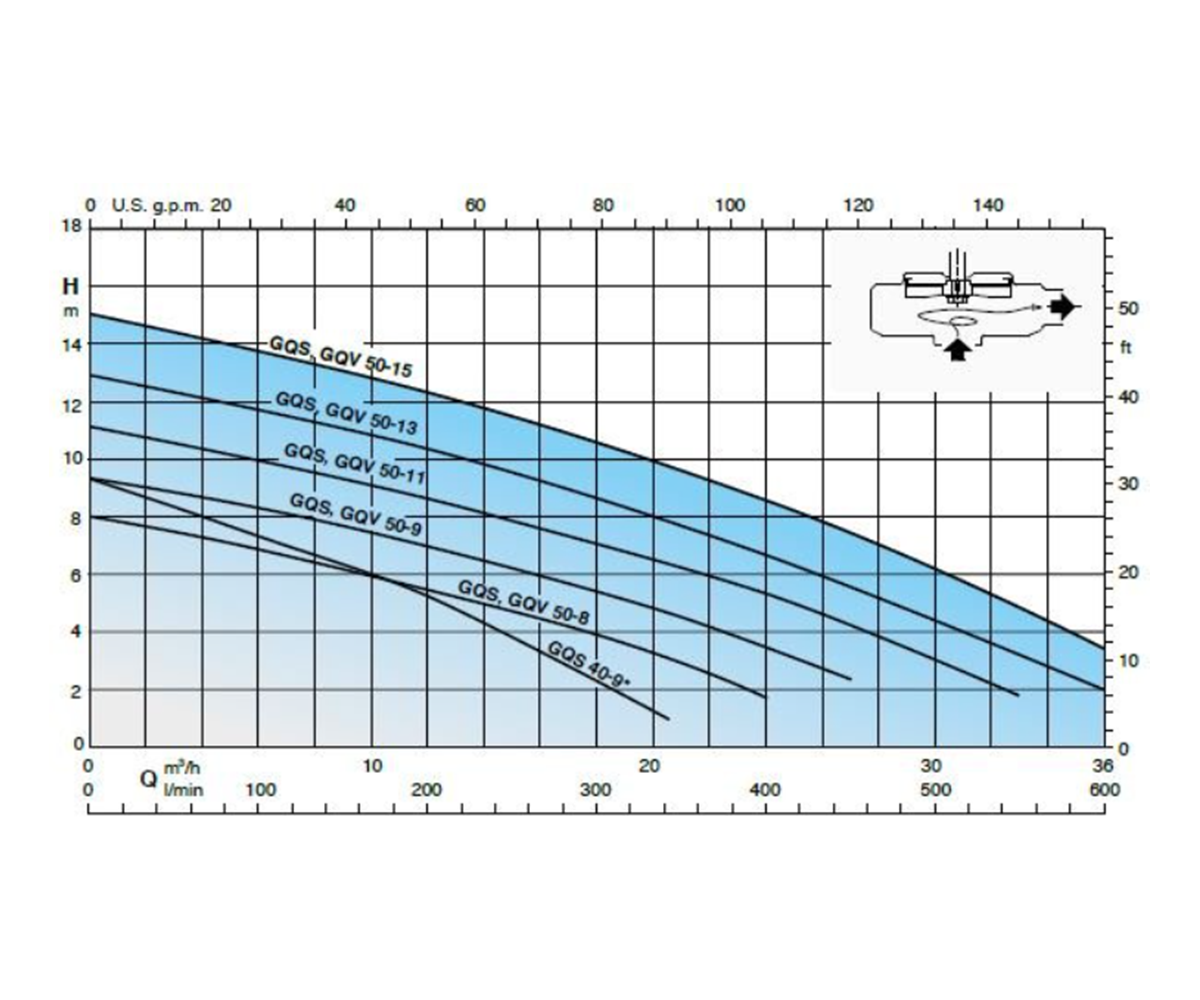 ტუმბოს აქვს ერთიმპელერიანი კონსტრუქცია ღია იმპელერით და ვერტიკალური გამოსასვლელი მილით, რაც უზრუნველყოფს წყლის ეფექტურ გადატუმბვას.