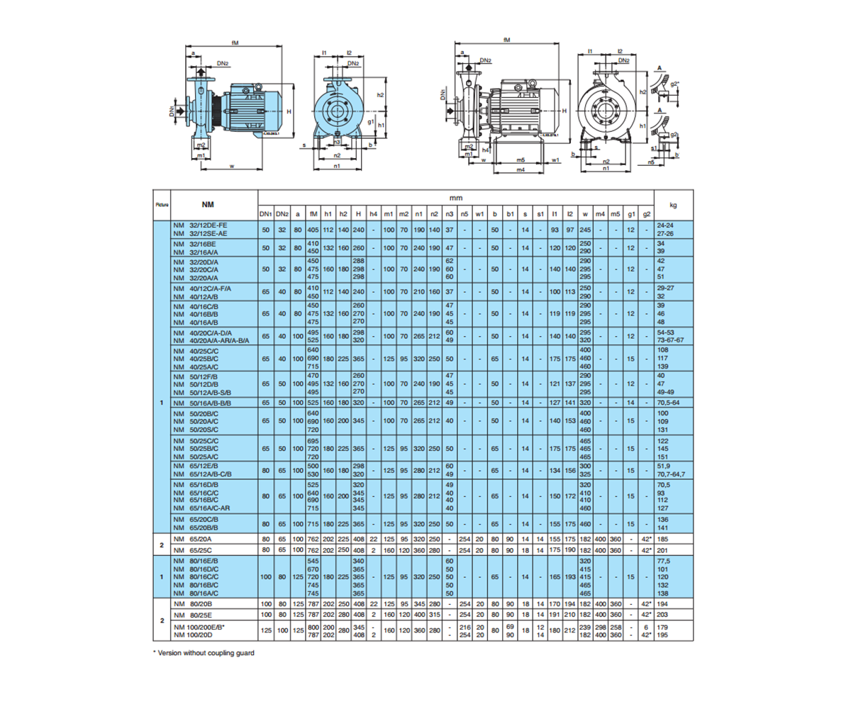 Calpeda NM 50/20A/B წარმოადგენს ფლანციანი შეერთების, ჰორიზონტალურ, მონობლოკ ტიპის end suction ცენტრიდანულ ტუმბოს,