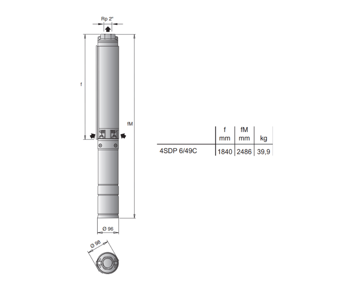 Calpeda 4SDP 6/49 წარმოადგენს 4-დუიმიან (DN 100 მმ) მრავალსაფეხურიან სკვაჟინის ტუმბოს,