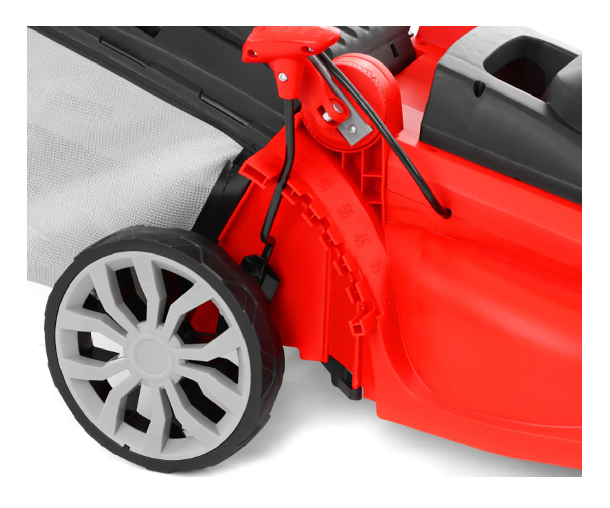 ჭრის სიმაღლე რეგულირდება ცენტრალურად 25-75 მმ დიაპაზონში, რაც საშუალებას გაძლევთ მარტივად მოარგოთ ბალახის სიმაღლე სეზონურ პირობებსა და სასურველ ვიზუალურ შედეგს.