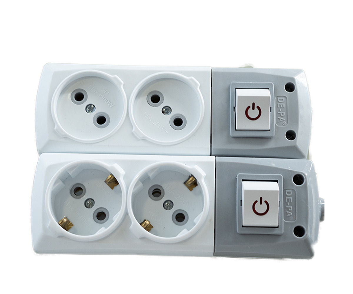 დამაგრძელებელი DE-PA 2 როზეტით, ღილაკით, დამიწებით